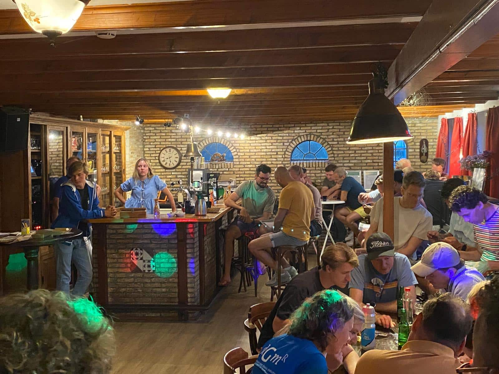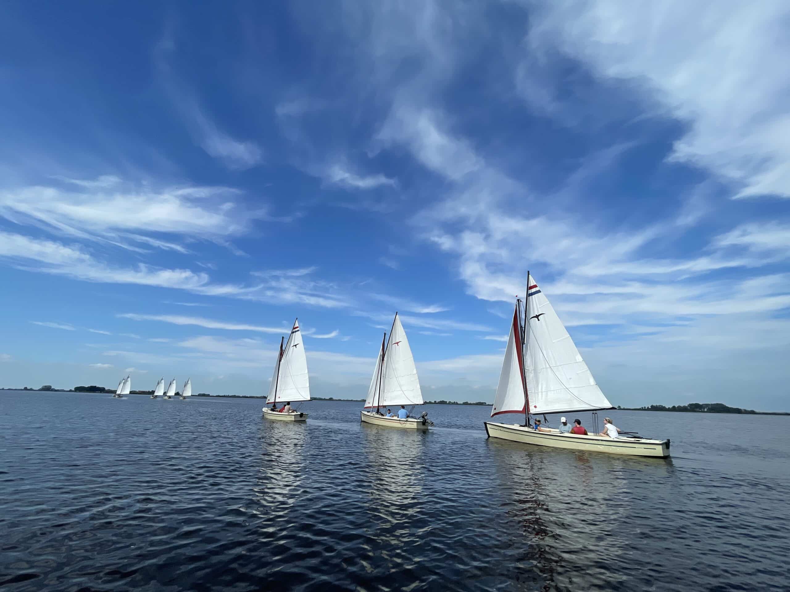 Zaterdagochtend kwamen ook de andere deelnemers en gingen we vrij zeilen om de Idzegaasterpoel te verkennen. Dit ter voorbereiding op de twee zeilwedstrijden in de middag. Met een krappe windkracht twee was iedereen in de gelegenheid om te zeilen, zowel de ervaren deelnemers als de deelnemers die hun eerste kennismaking met de zeilsport hadden. Na het zeilen was het tijd voor een drankje, bbq-en en een pubquiz in het thema van Hollands Glorie. Met de uitslagen van de eerste wedstrijden in de pocket was de eerste tussenstand bekend, want het blijft natuurlijk wel een (vriendschappelijke) wedstrijd tussen concullega’s en opdrachtgevers in het akoestische werkveld. Daarna was het tijd voor muziek, dansen en gezelligheid in de bar.