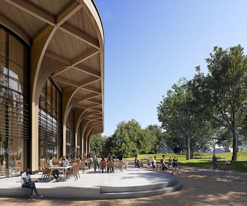De constructie van de SuperHub is bio-based en circulair. Dit stelt weer andere eisen aan brandveiligheid, die we deelden met het ontwerpteam van MWPO en De Zwarte Hond. Door het gebruik van hout zorgt het gebouw voor verbinding met de omliggende natuur. De supermarkt die op deze plek komt, moet ook aantonen hoe zij bijdraagt aan lokale duurzaamheid. De afmeting en constructie van het gebouw maakt het in de toekomst mogelijk om te kiezen voor andere functies, zoals wonen, sporten of onderwijs.